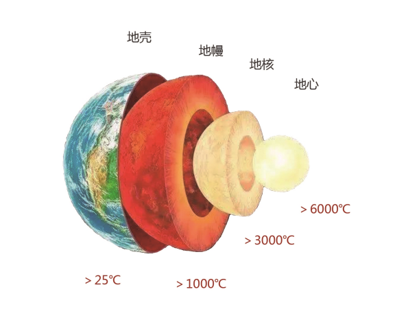 我們?nèi)祟愘囈陨娴牡厍蚴且粋€龐大的熱庫,其蘊藏著極其豐富的熱能。地球的地表以下,每一層的溫度都不盡相同,一般來說,從地表以下深度每下降100米,溫度就升高3℃~ 4℃,在一些地?zé)?/a>異常區(qū),溫度隨深度增加的幅度更大。