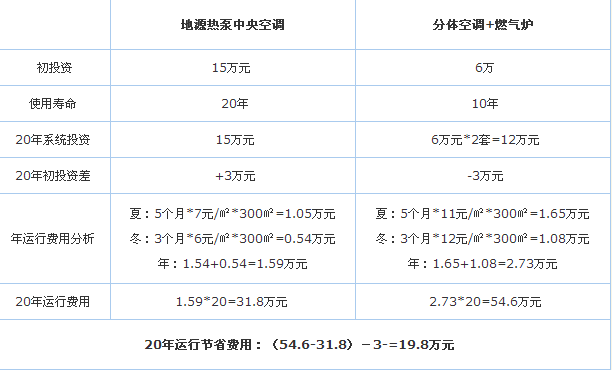 1 、初投資比較。別墅地源熱泵中央空調(diào)初投資比較機(jī)組初投資比冷水機(jī)組增加20%左右;增加打井費(fèi)用;無(wú)冷卻水塔和冷卻水系統(tǒng);無(wú)鍋爐和鍋爐房;無(wú)入網(wǎng)費(fèi)(天然氣、城市熱力網(wǎng));無(wú)儲(chǔ)油罐安全費(fèi)。